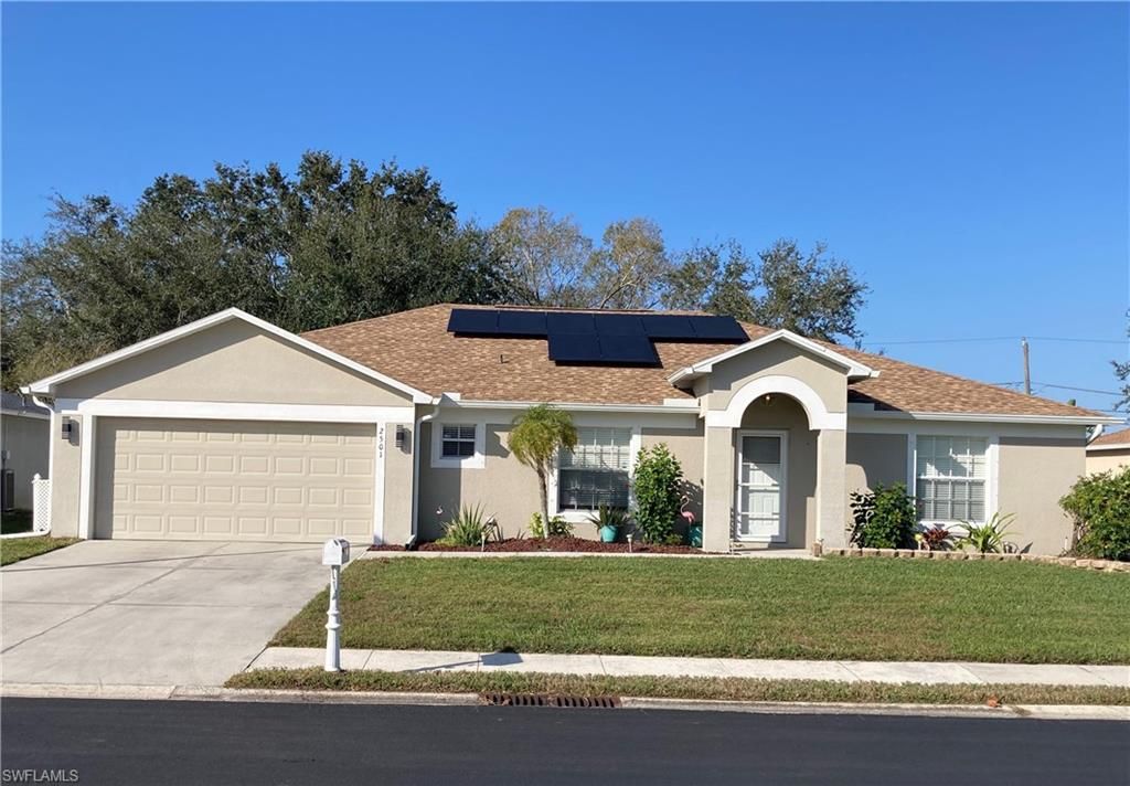 Experience Florida living in this well maintained 3-bedroom 2-bathroom turn-key home. Perfect for comfort and style. Enjoy 2000 Sq Ft+-, of living space and an open floor plan. Large ceramic tile in the kitchen that boasts a spacious center island perfect for entertaining, along with an eat in dining area and stainless steel appliances. Living area has new flooring throughout and is attached to the kitchen, with plenty of room to stretch out. This home is fully equipped with a solar energy system. Enjoy eco-friendly and cost-saving living, with NO electric bill. Plus a new water treatment system that cares for the whole house. Get ready for fresh, clean, chemical free water. A dedicated dining room adds a feel of elegance to your home. As well as a bonus room to be used however your dreams happen. Master bedroom is large and spacious with a walk-in closet. The on-suite bath has an inviting garden soaking tub, separate shower, new sink/vanity and private linen closet, with plenty of space to spare. Each bedroom is equip with a ceiling fan/light. Laundry Room equipped with upscale Washer/Dryer, (Samsung stand alone units) and additional storage cabinet. New roof installed in 2023, includes new rain gutters that wrap around the whole house. New Air handler for AC/Heater was installed December 2024. 2 car Garage. Backyard is a wonderful private oasis surrounded with a 6’ privacy fence and 2 large Southern Oak trees giving shade to your yard and creating a perfect area for down time and great for pets. Large fully screened in Lanai with new ceiling fan/light. Complete yard irrigation system with a new Rain-Bird irrigation control panel.